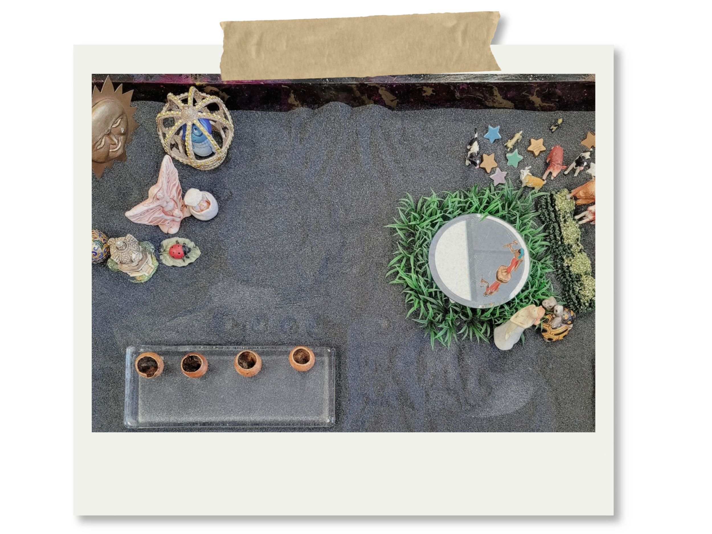 The underlying idea is that the psyche communicates in images and symbols, not only in words. When you build a world in the sand, you are giving form to something that lives in you, something that may not yet have language, or that loses something essential when it is translated into language. The sand tray becomes a container for what is hard to hold otherwise.